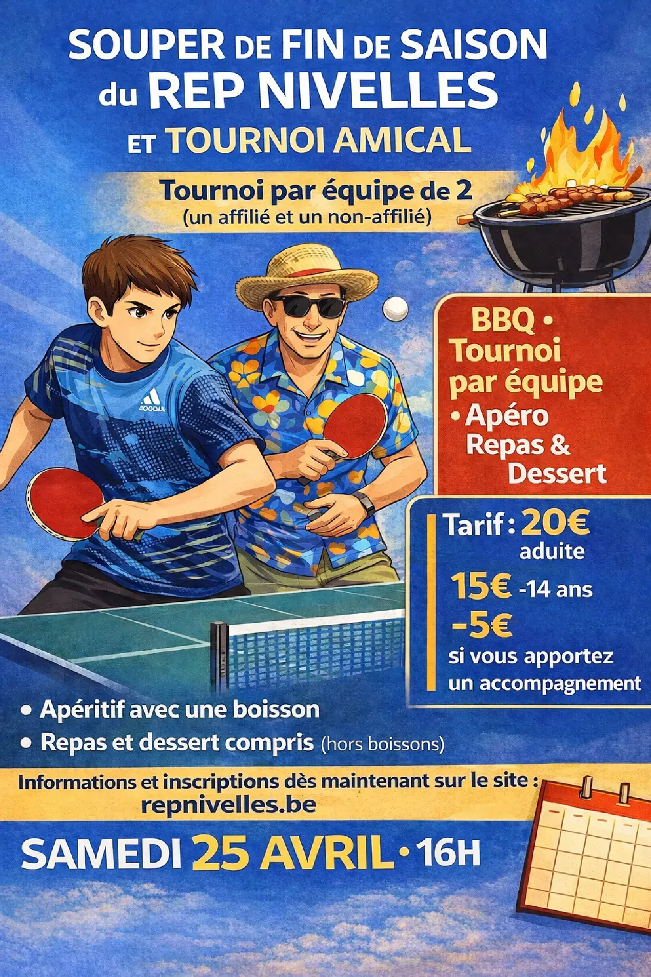 Souper annuel du club samedi 25 avril à partir de 16h.